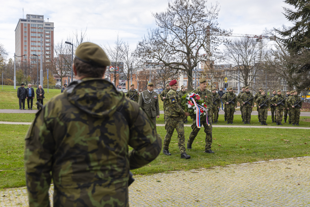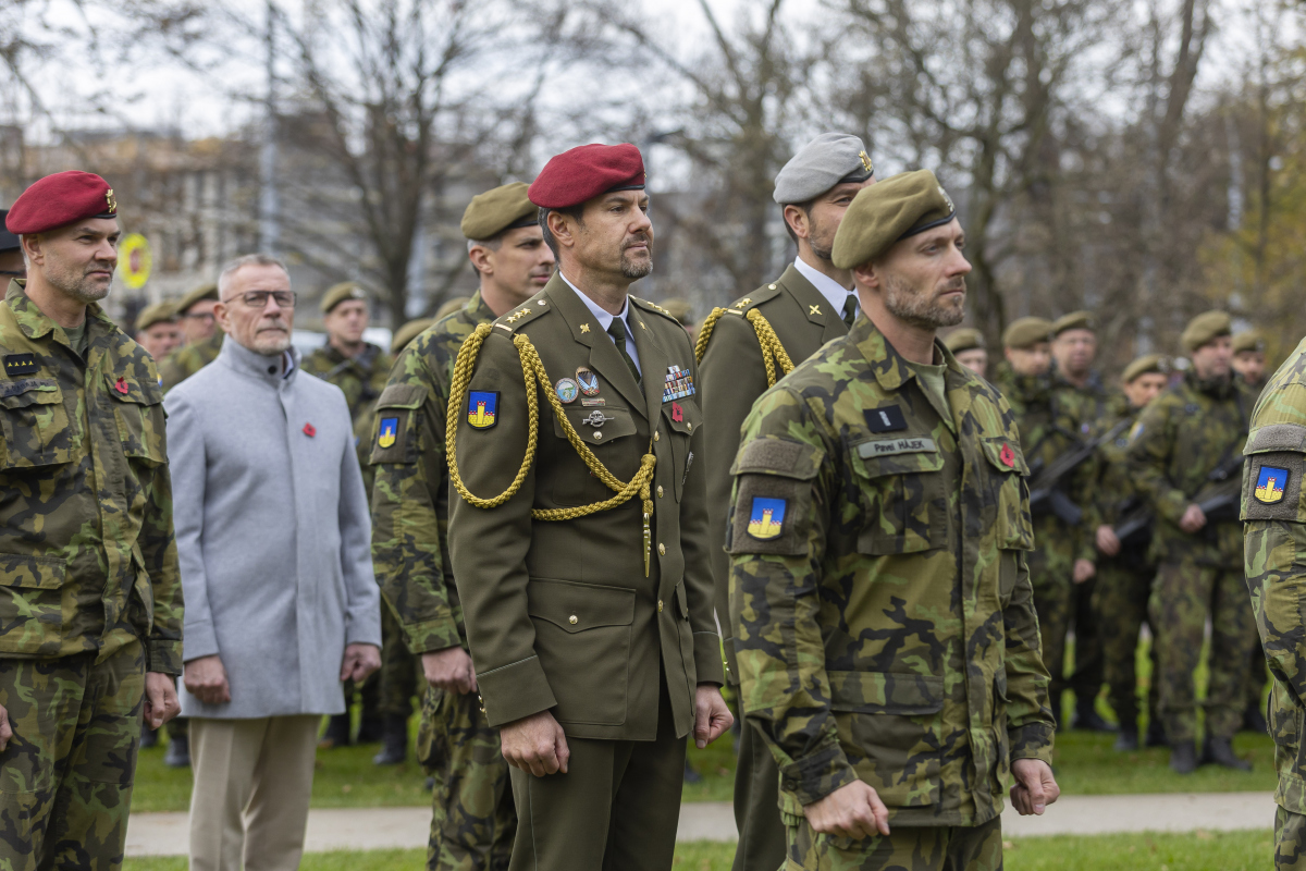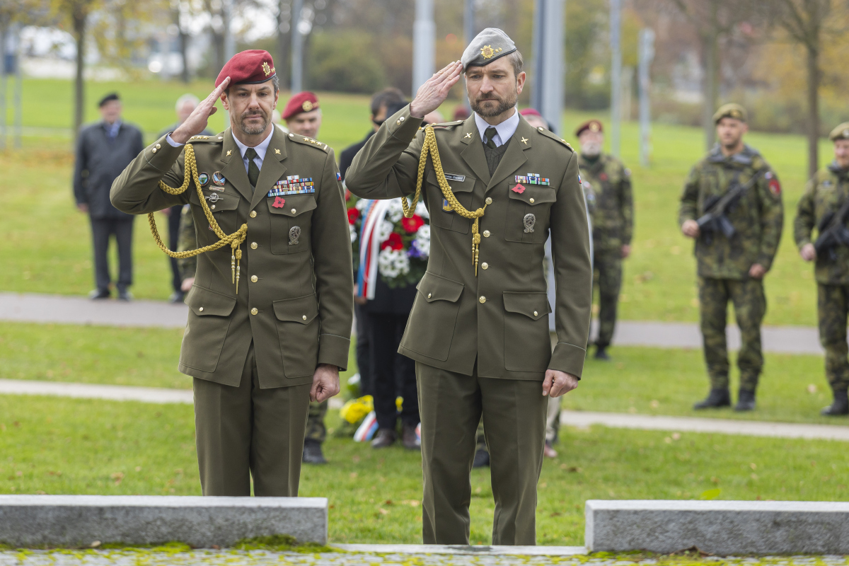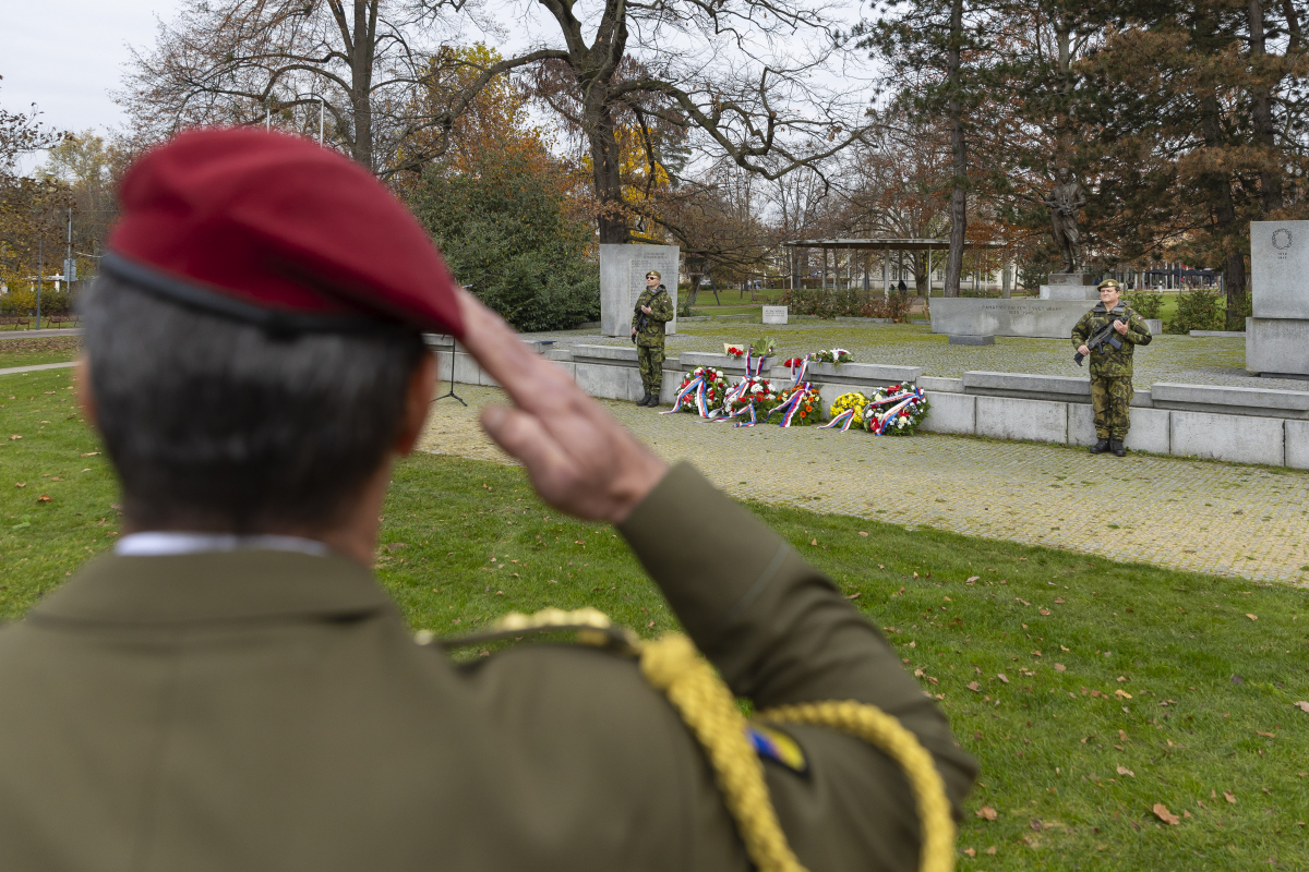 Účastníci vzpomínky položili věnce a květiny k památníku a společně vyjádřili úctu vojákům a obětem minulých válečných konfliktů i novodobým veteránům současných vojenských misí Armády České republiky v zahraničí.