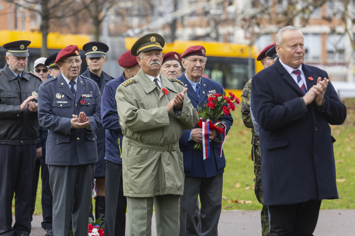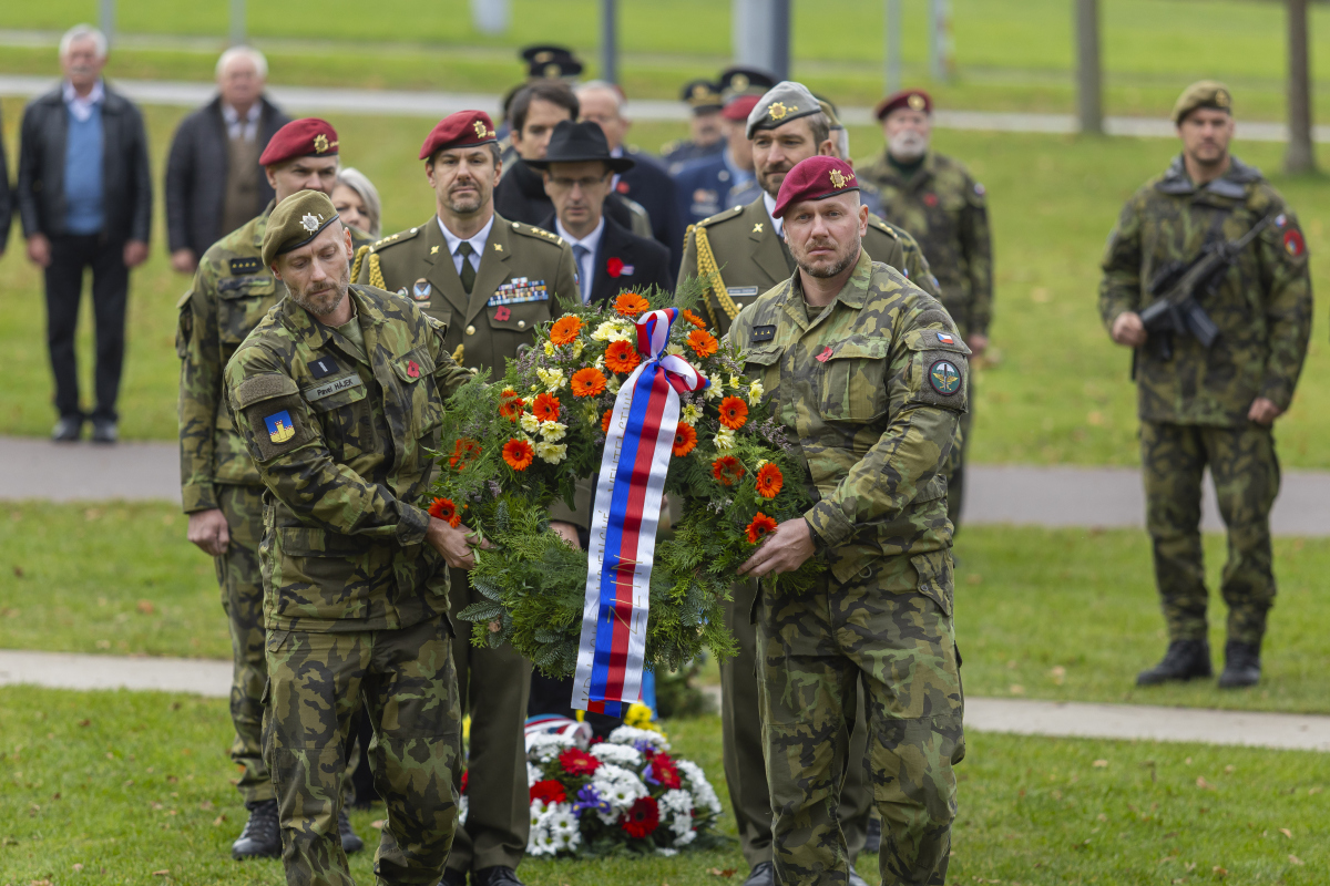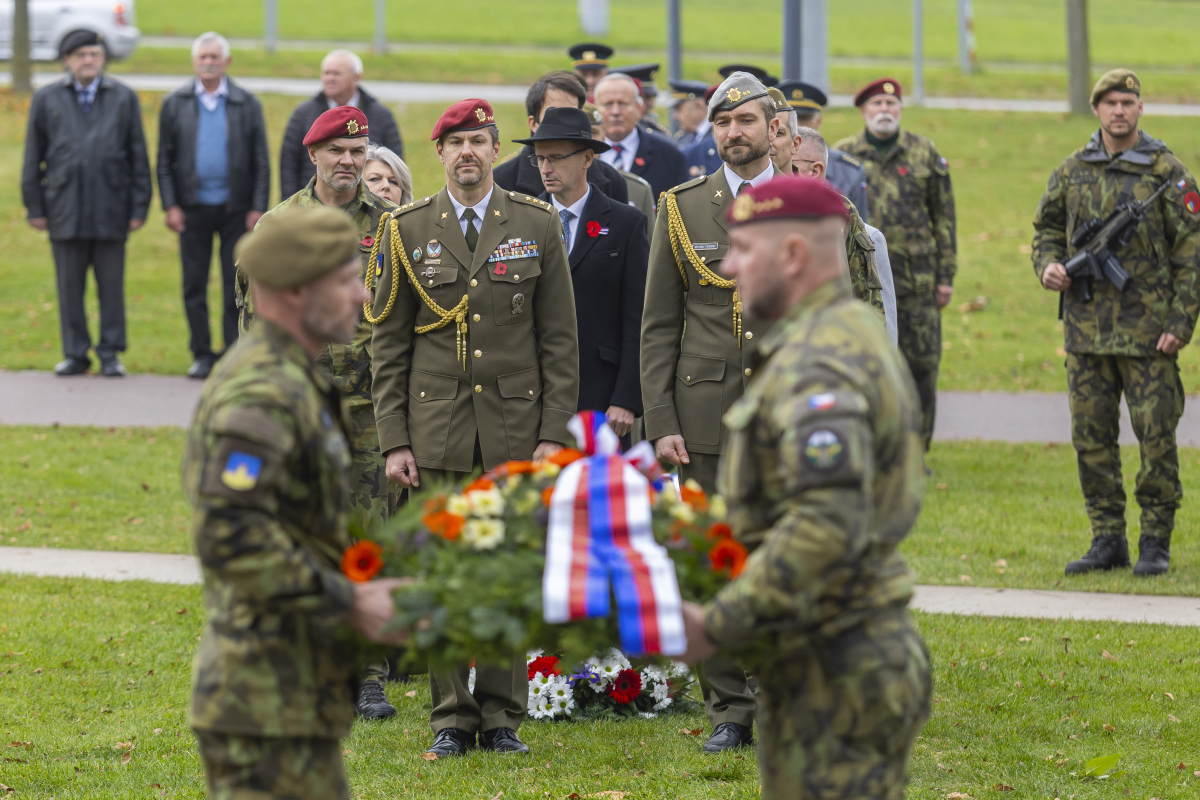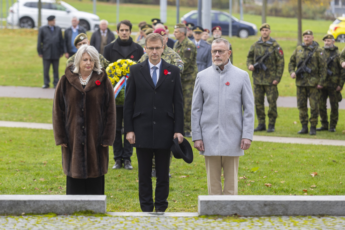 Účastníci vzpomínky položili věnce a květiny k památníku a společně vyjádřili úctu vojákům a obětem minulých válečných konfliktů i novodobým veteránům současných vojenských misí Armády České republiky v zahraničí.